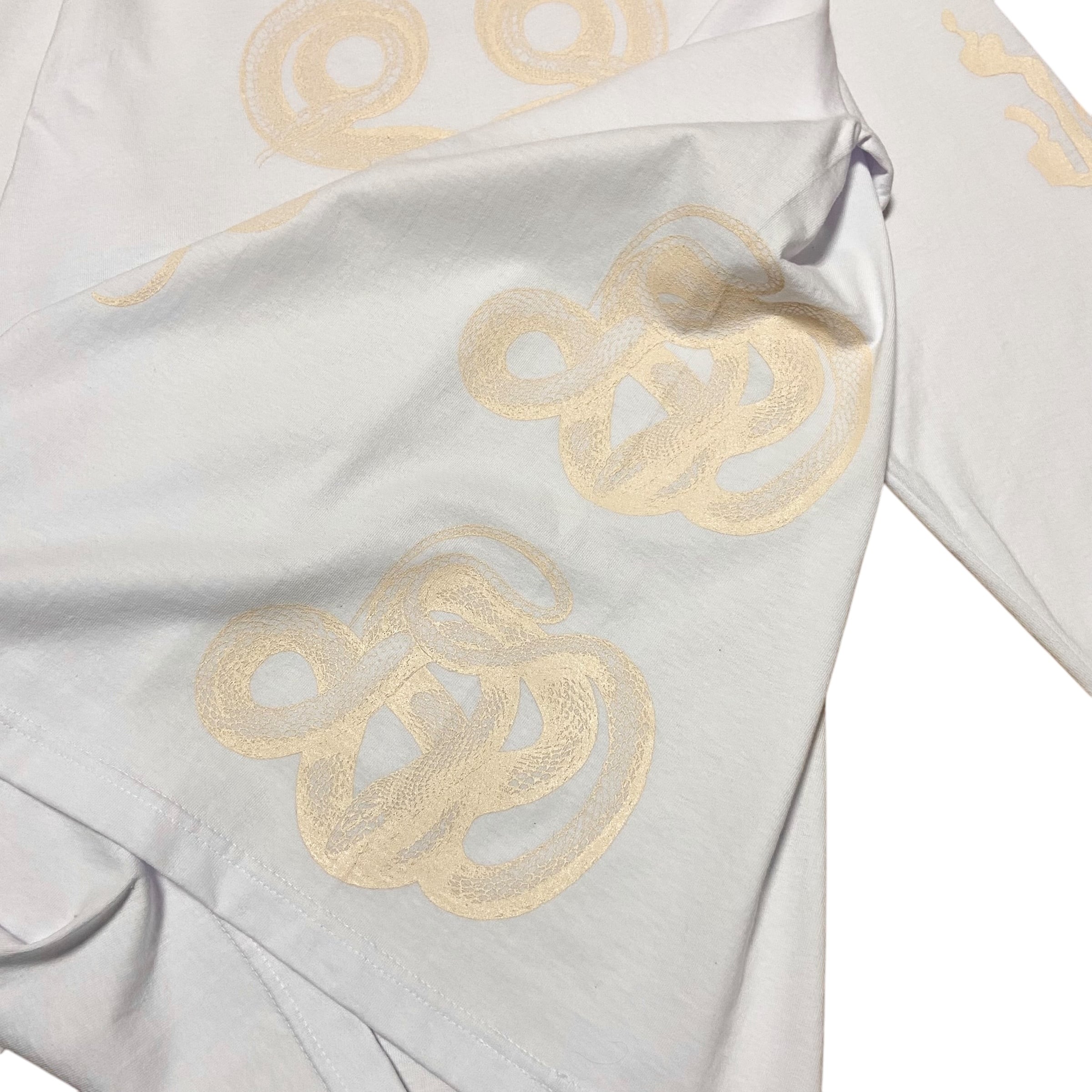-フロント/バック/両スリーブ/片方の脇下にスネークパターンのプリント。
