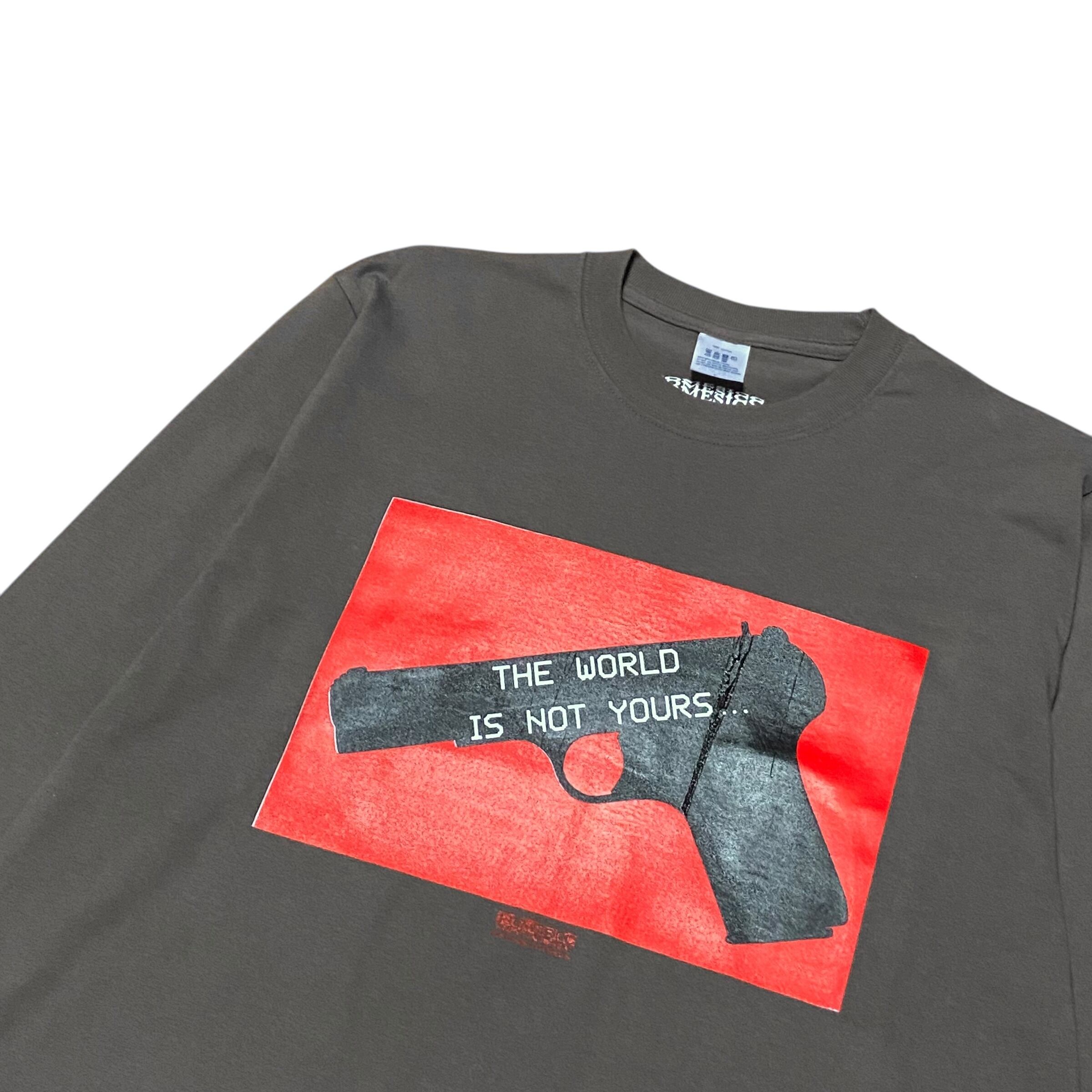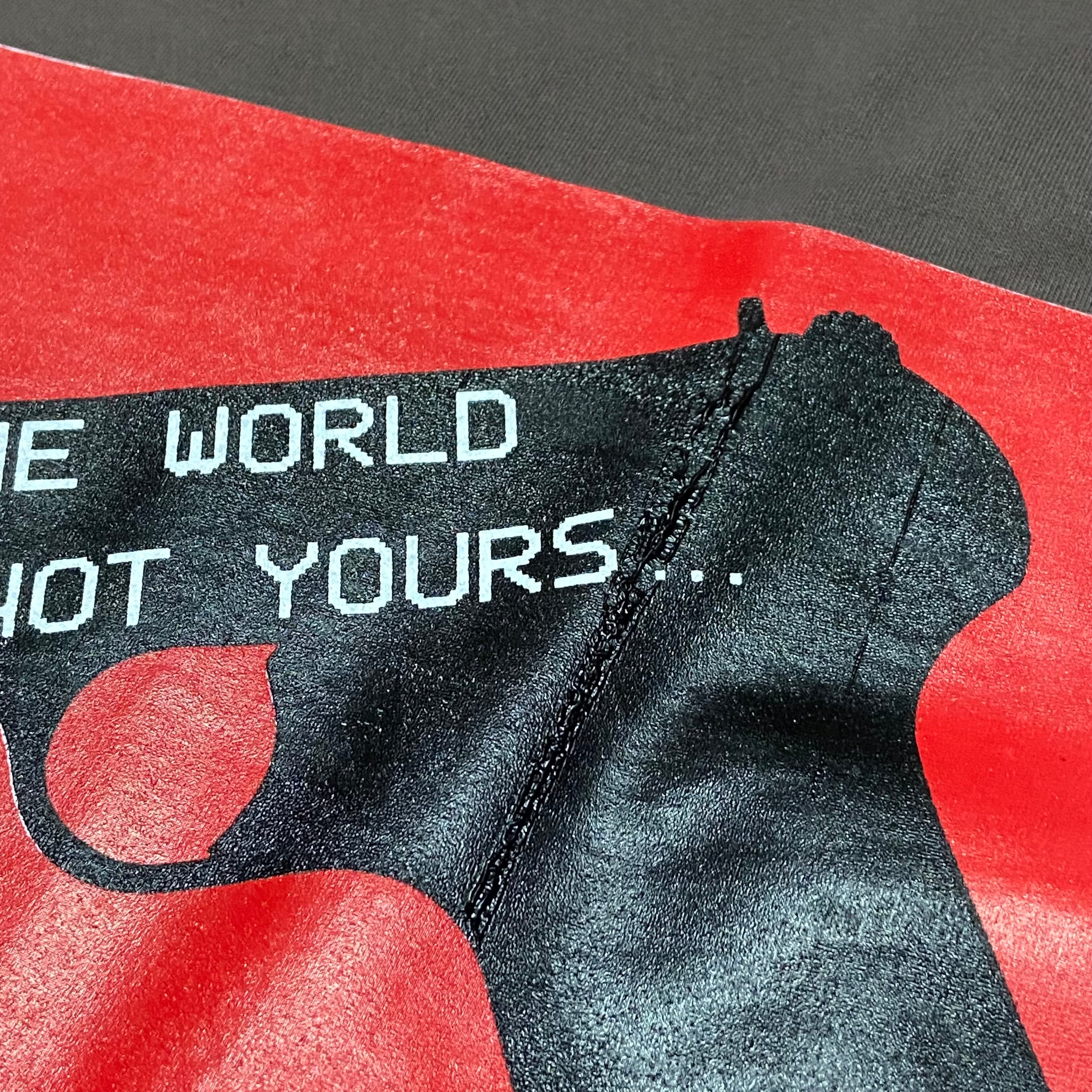 -レッドのボックスロゴにトカレフのシルエット、”The world is not yours”のメッセージ。