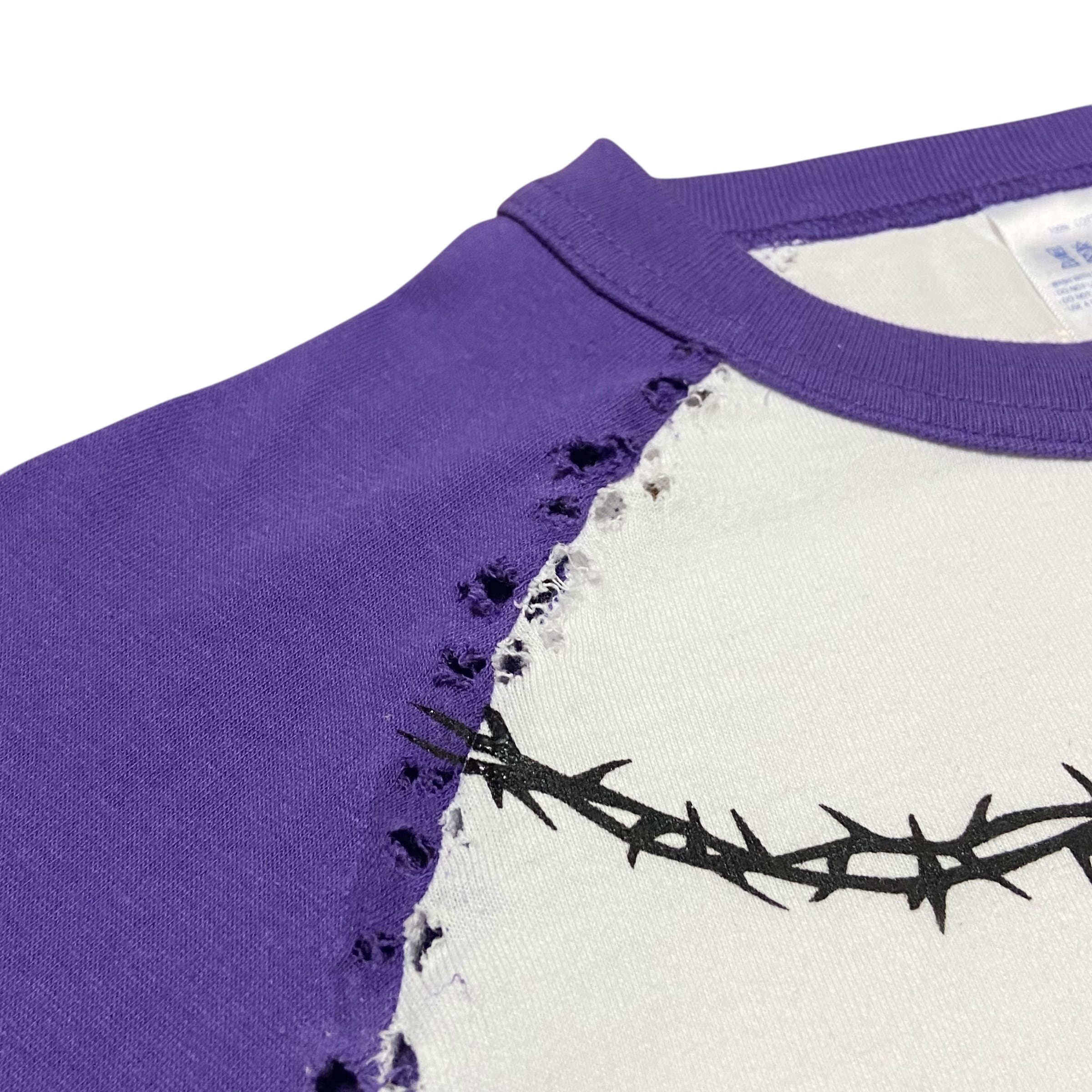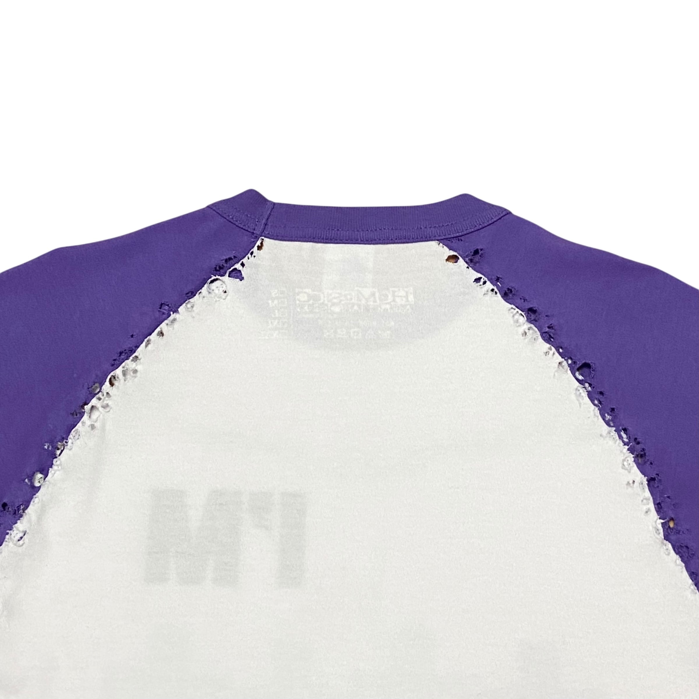 -ラグランスリーブの切替部分にハードなダメージ加工。