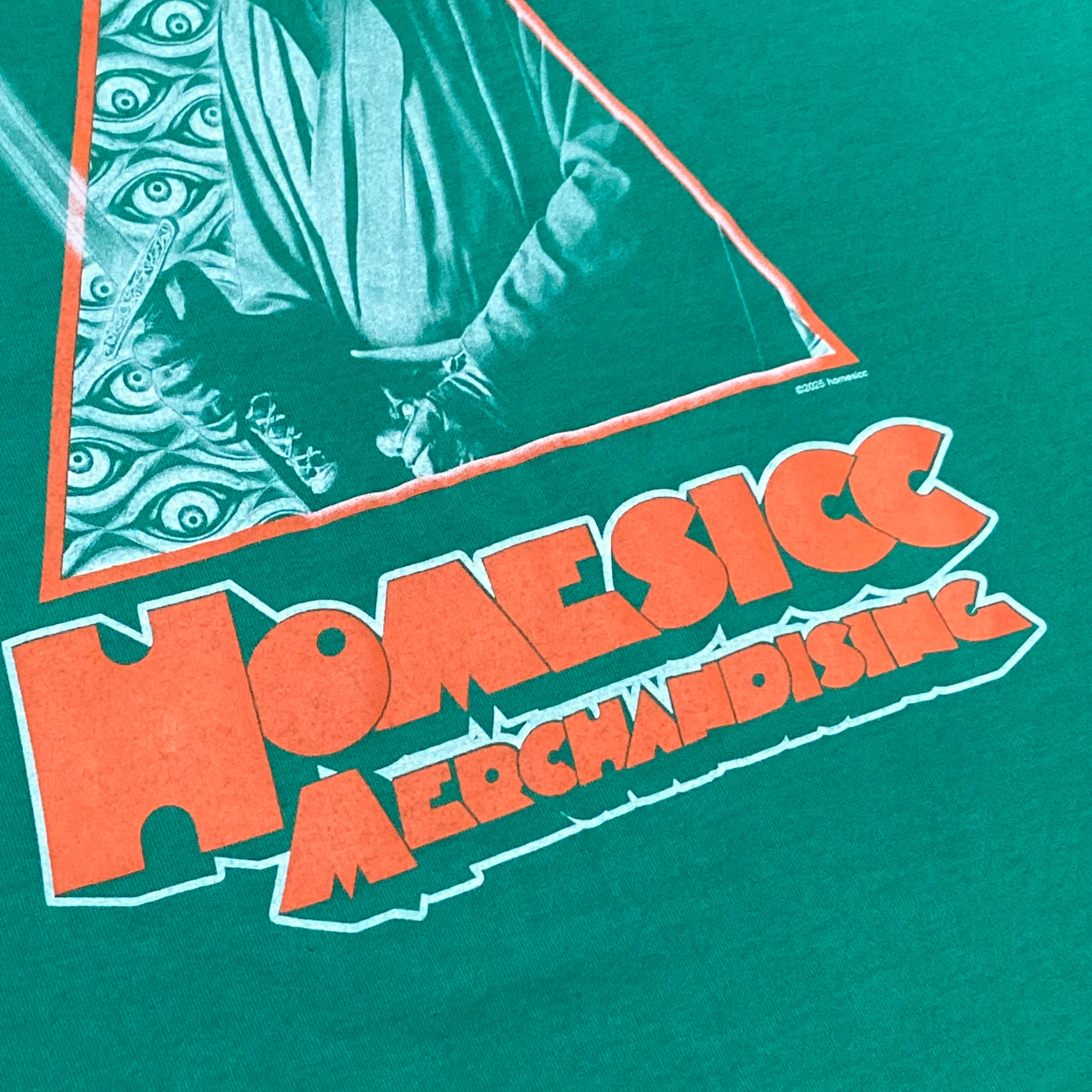 -フロントにスカルとアイボールのコラージュデザインプリント。
