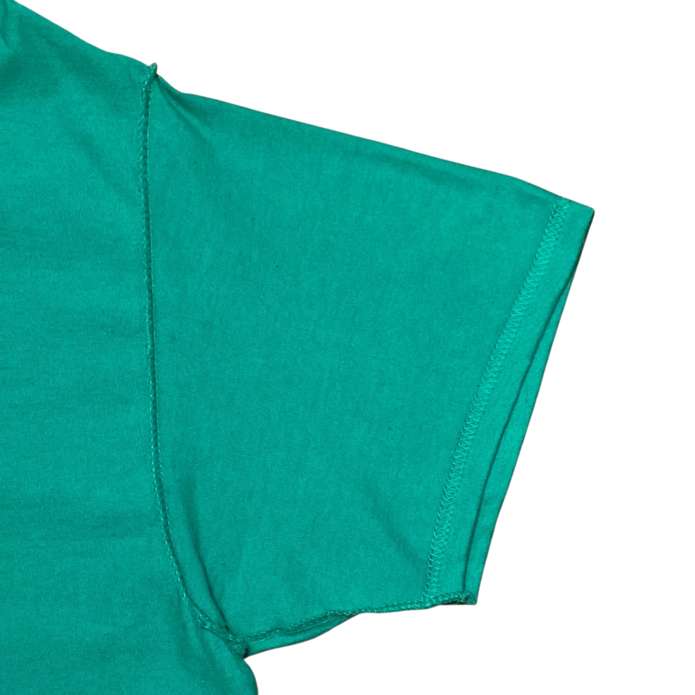 -Tシャツの裏側にプリントすることで着用する際にロックステッチが表に出る仕様。
