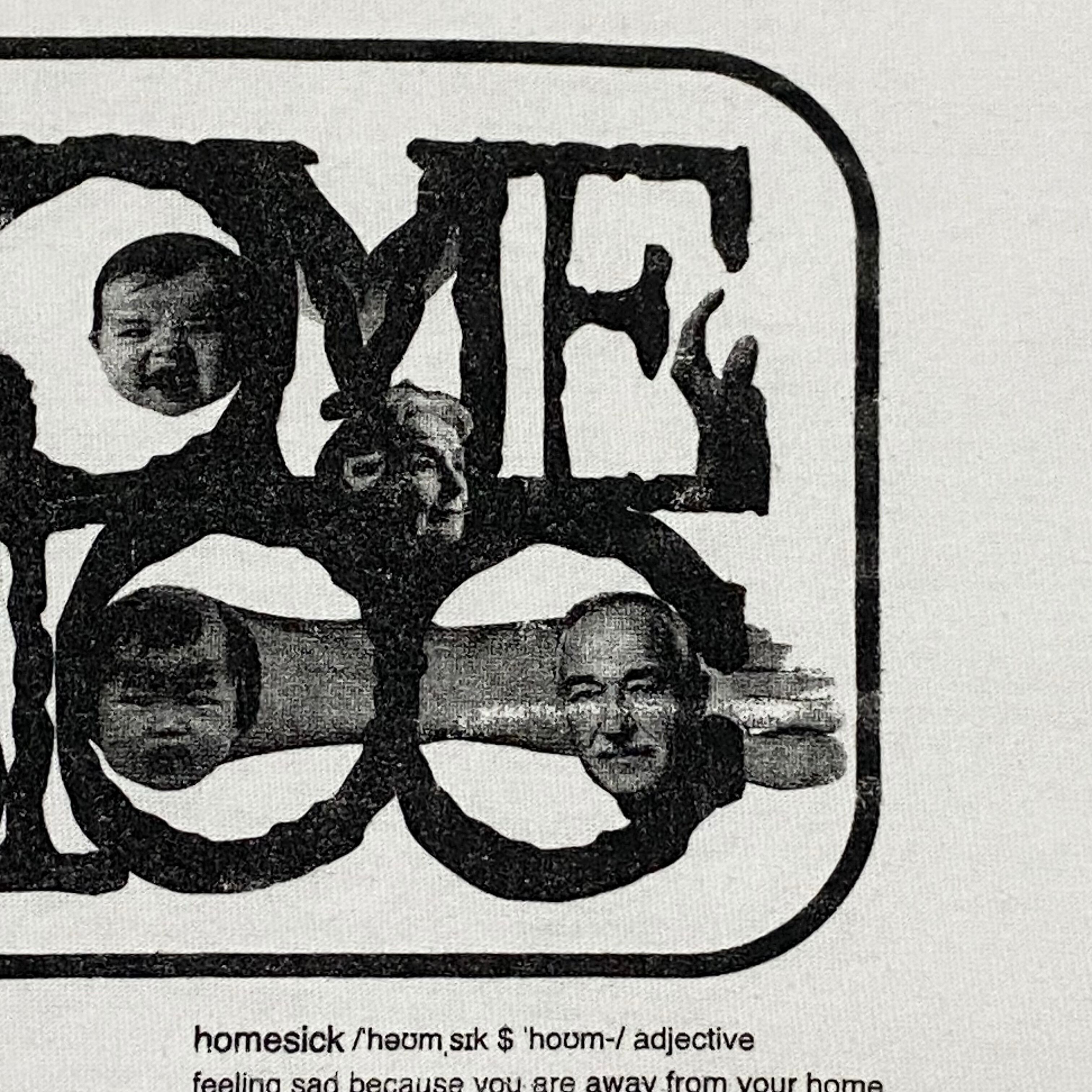 -フロントに人間の身体と顔をコラージュしたロゴプリント。