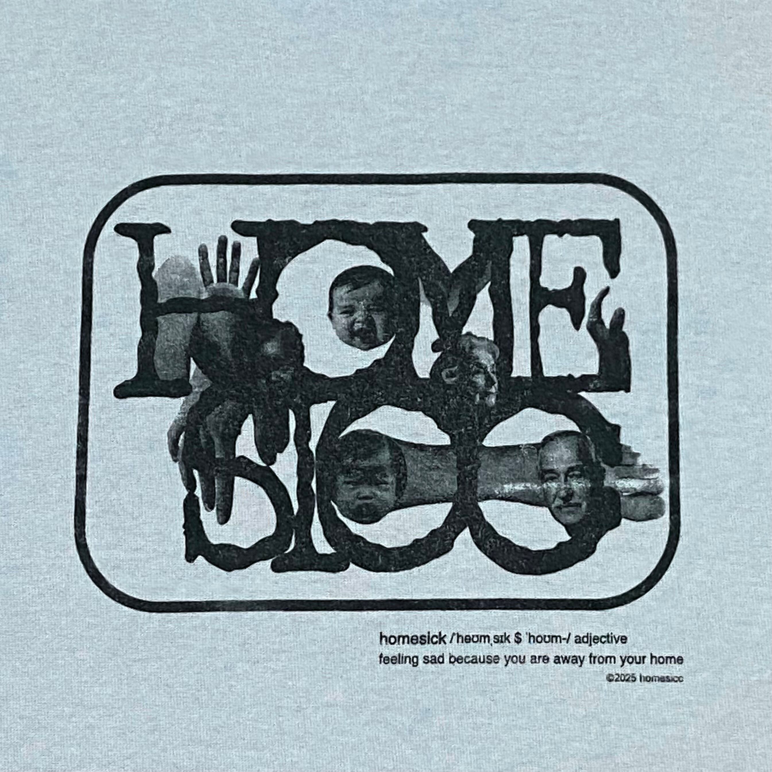 -フロントに人間の身体と顔をコラージュしたロゴプリント。