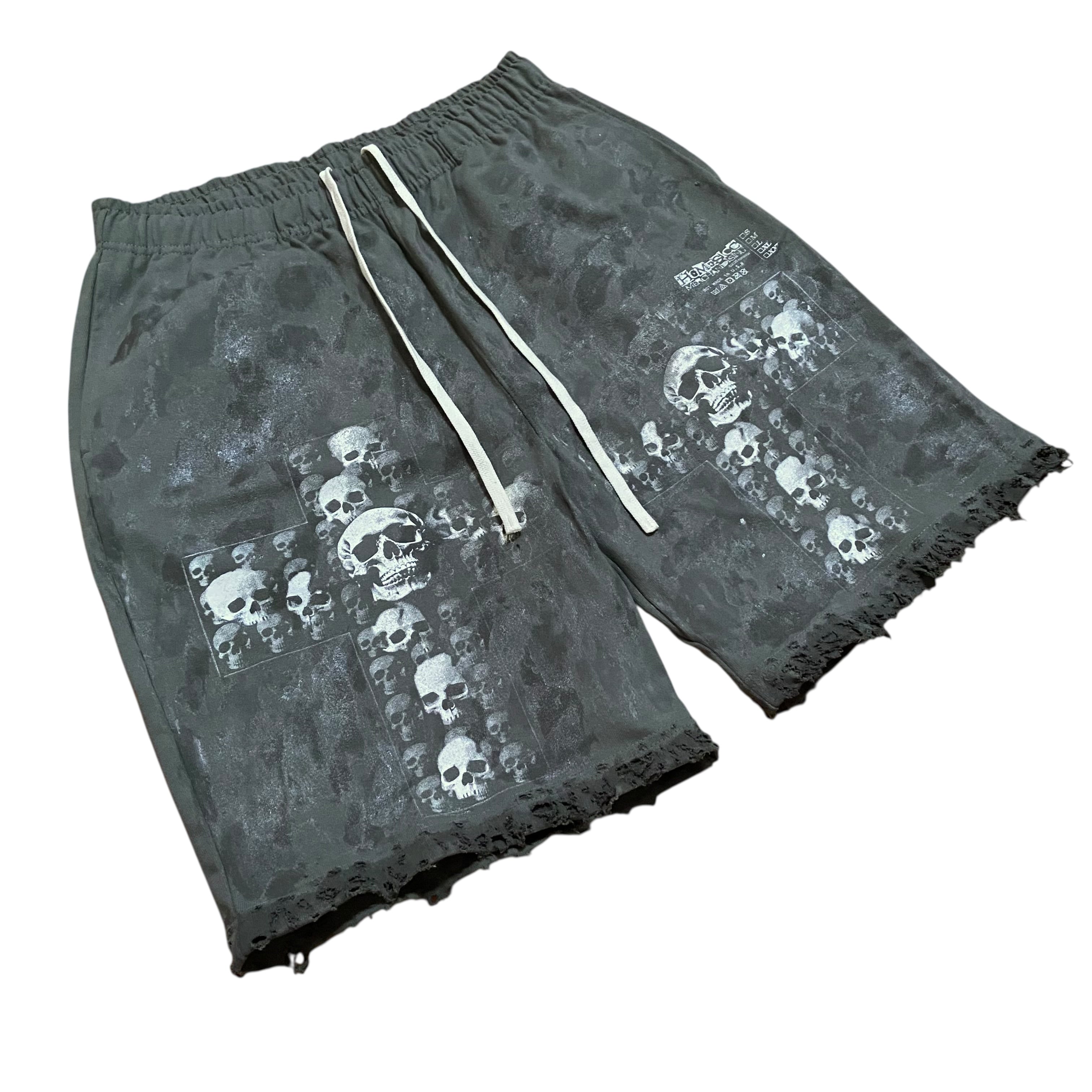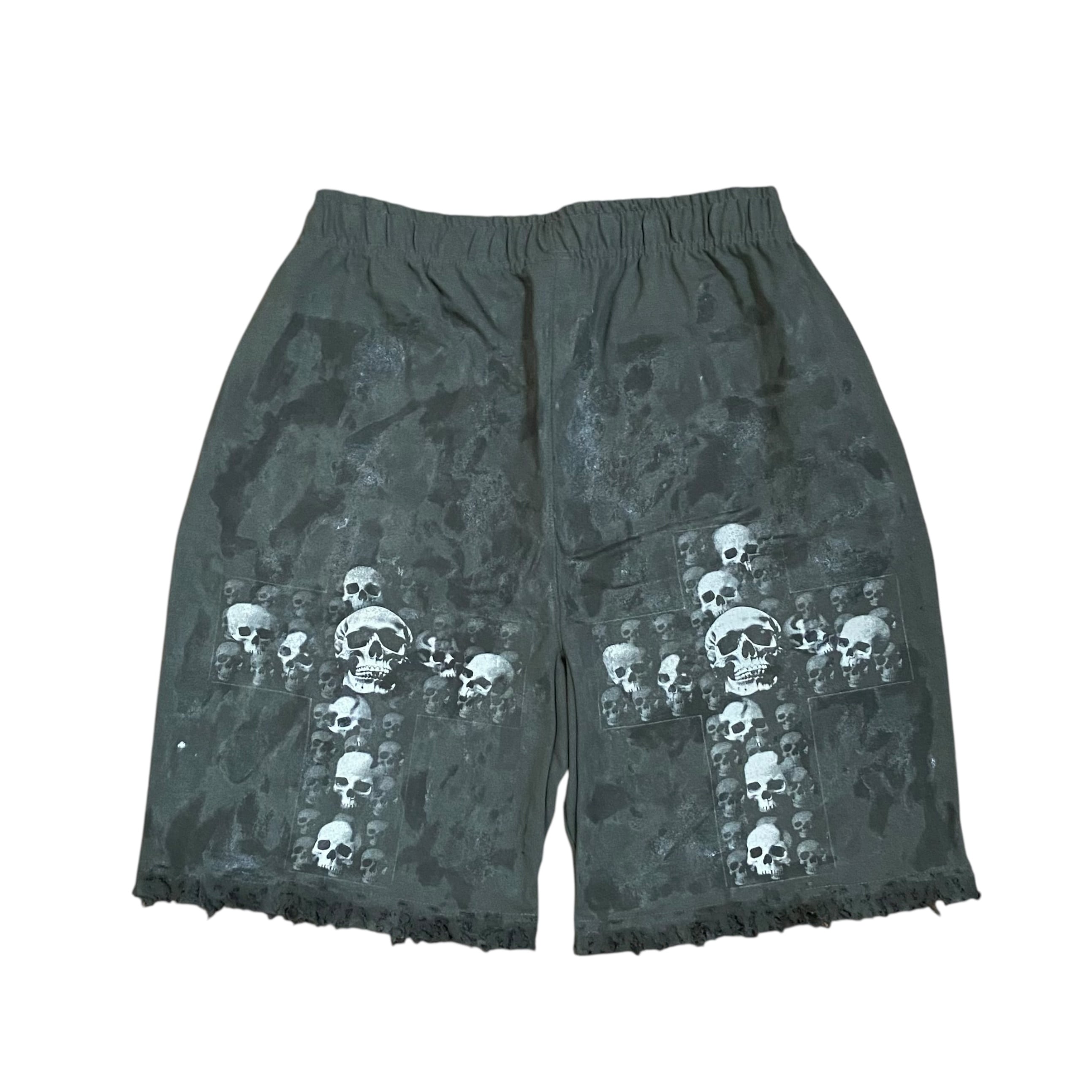 -フロント/バックに合計4点のクロスモチーフをプリントしたショートパンツ。