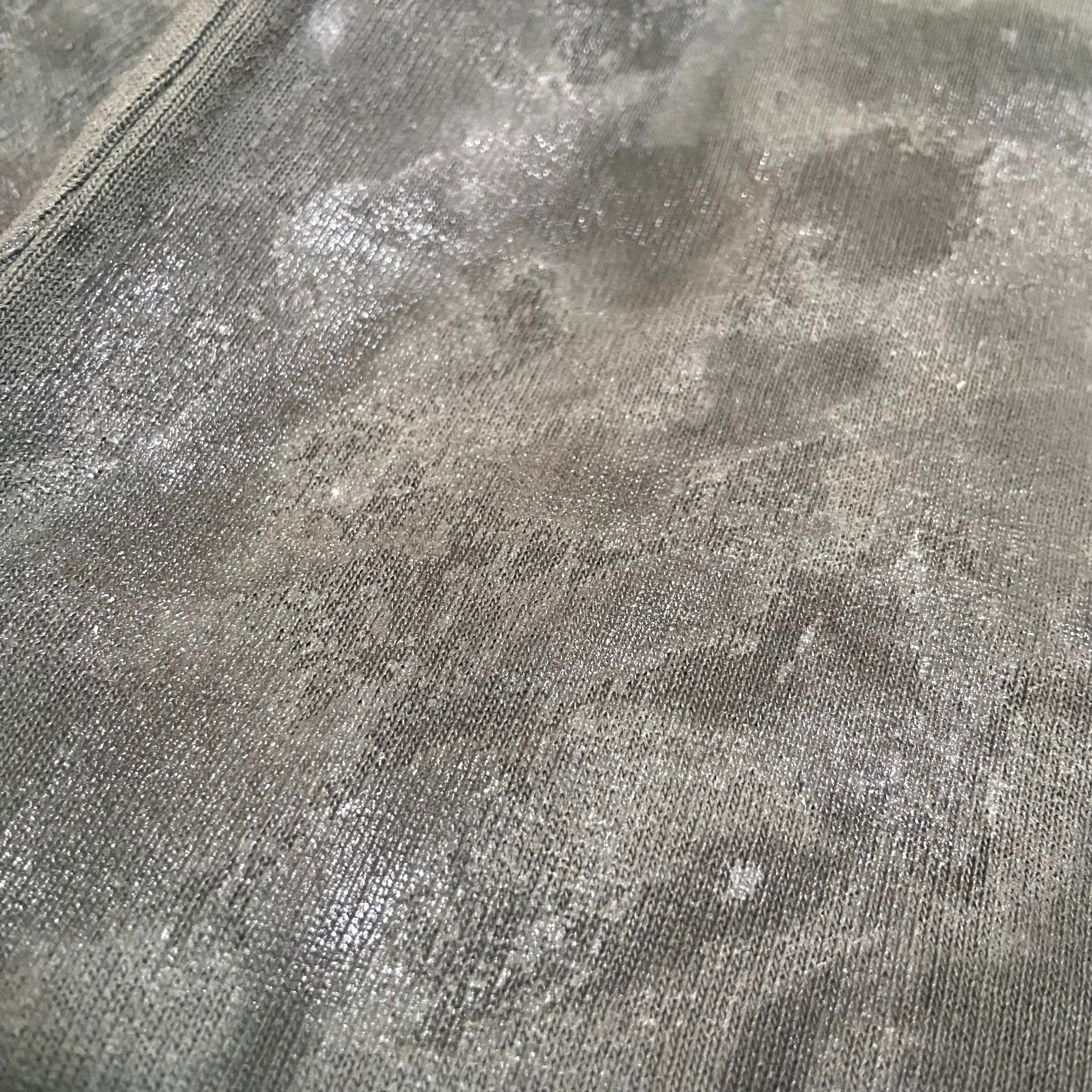 -裾に激しいダメージ加工を施し、透明樹脂を塗布。