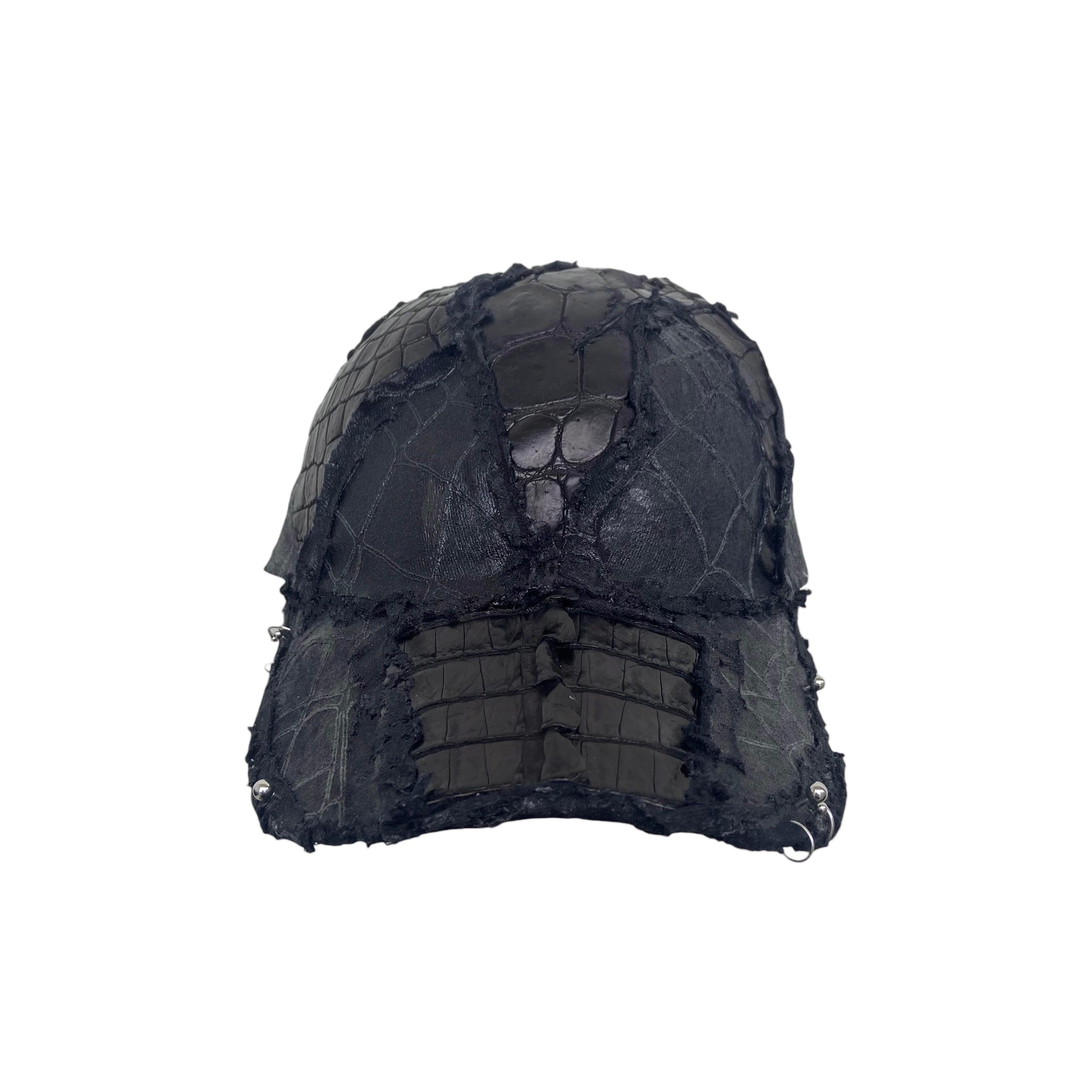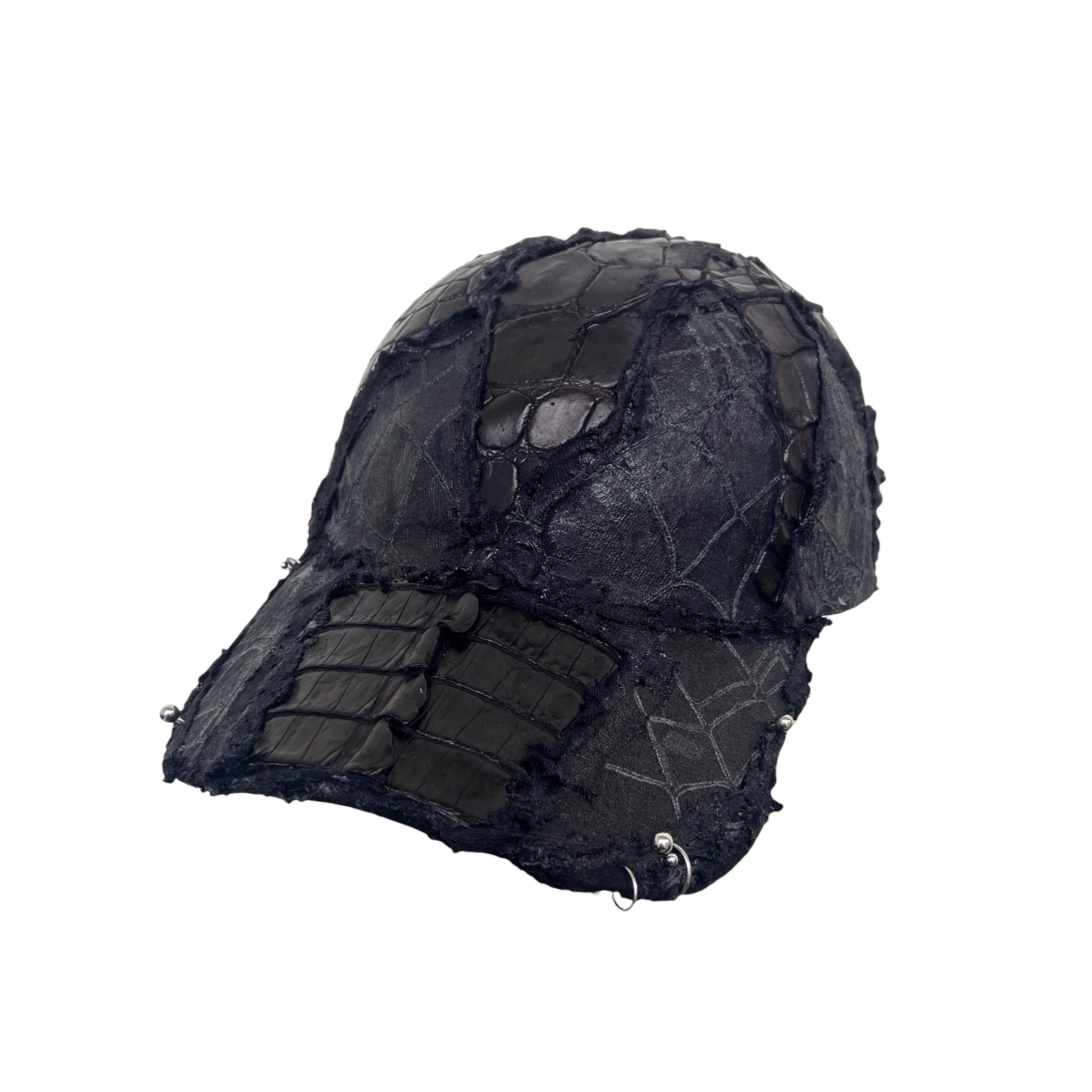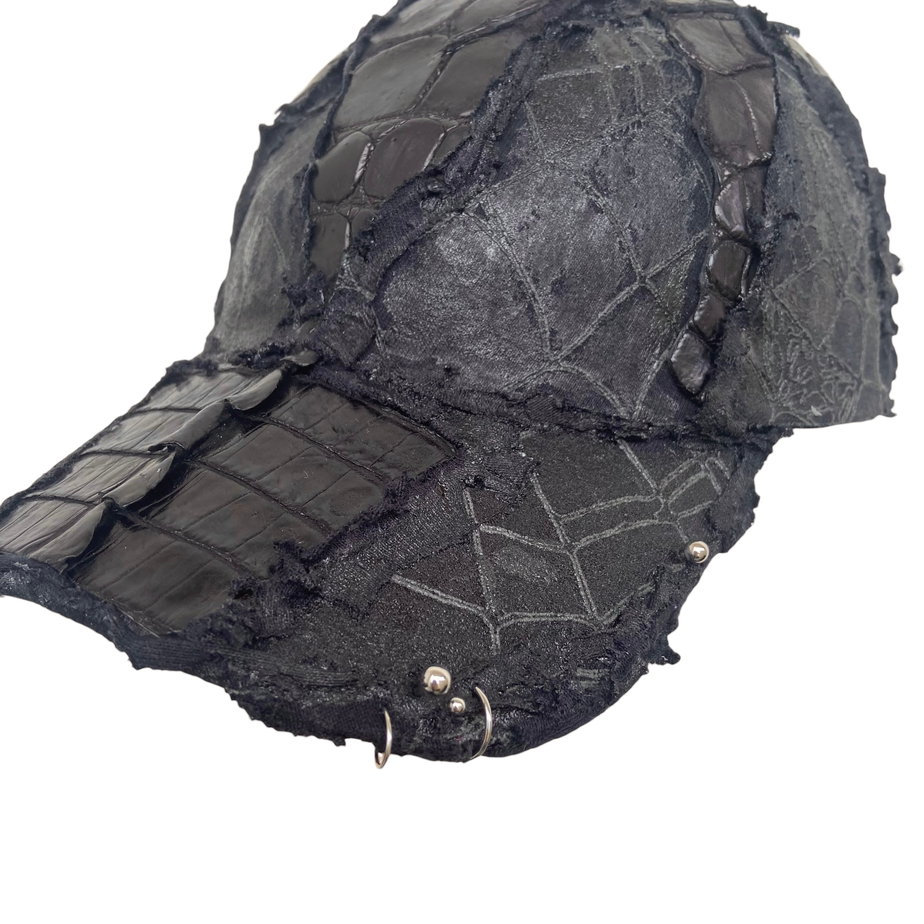 -全面にクロコダイル/カイマンのレザーを使用したカスタムキャップ。