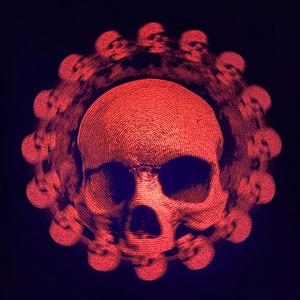 -胎児の髑髏を中心に、無数の髑髏が回転しているグラフィック。
