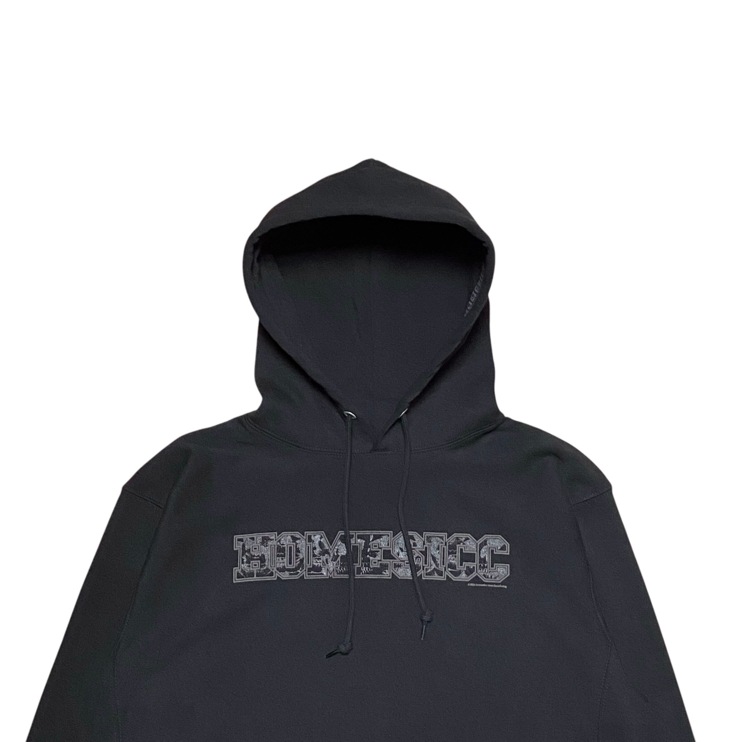 -カレッジフォントの内側に総柄のスカルが施されたデザイン。